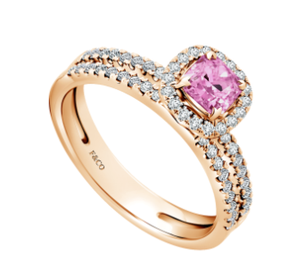 Promise ring dilengkapi dengan berlian serta pink sapphire yang merupakan manifestasi cinta sejati.