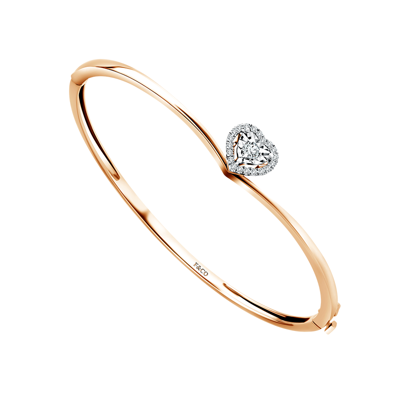 Tidak hanya liontin berlian berkualitas yang akan menawan hati Anda. Perhiasan berlian eksklusif lainnya dari Bright Love Collection adalah bangle unik dan cantik. Bright Love Bangle, bangle rose gold V shaped yang dihiasi berlian round diamond dengan bright cutting berbentuk hati dan total berlian 21 butir F VVS.
