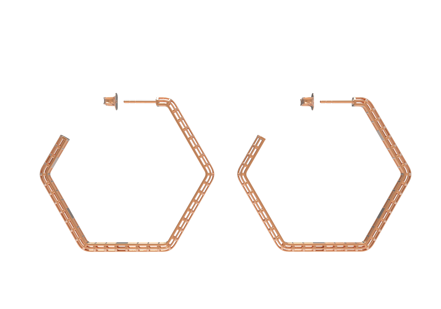 Ingin look yang lebih playful? Anda dapat memilih anting-anting berbentuk hexagon dengan nuansa rose gold berikut. Ini akan jadi fashion item yang pas untuk memberi statement pada penampilan Anda.