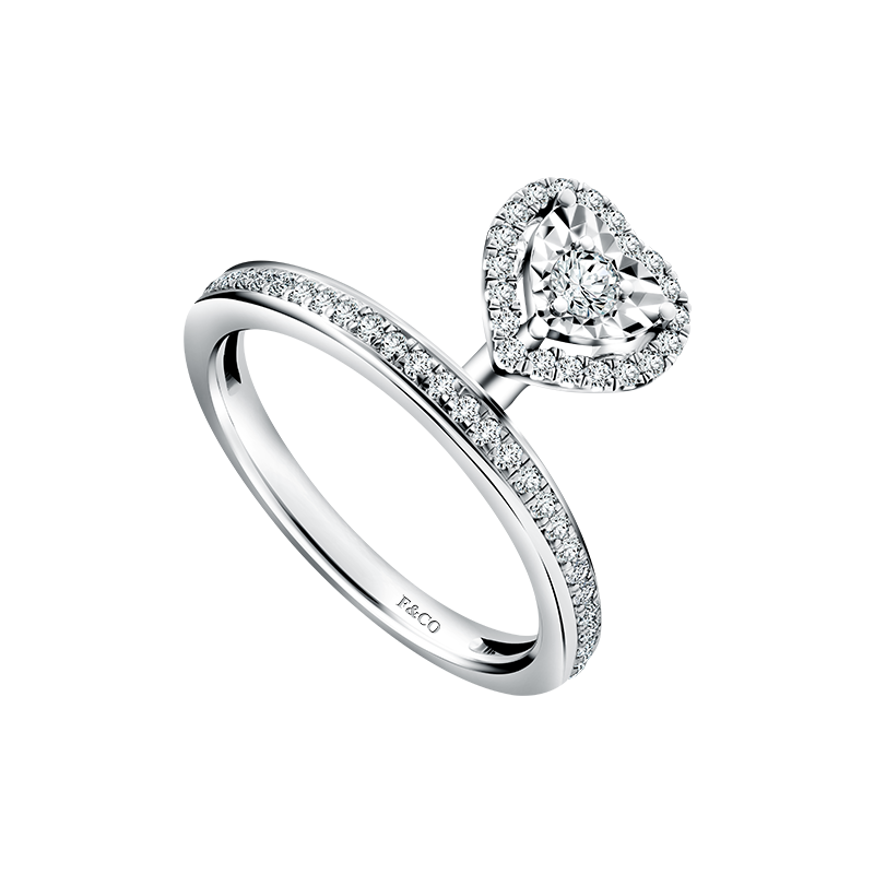 Cincin ini dapat dijadikan cincin tunangan maupun daily fashion item yang dapat menemani hari-hari Anda. Cincin yang didesain fashionable ini memiliki round diamond dengan bright cutting berbentuk hati dan total diamond 48 butir F VVS.