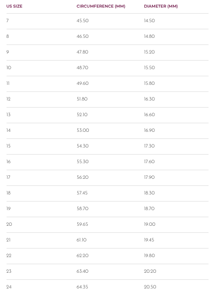 Ring Size Chart dari Frank & co.